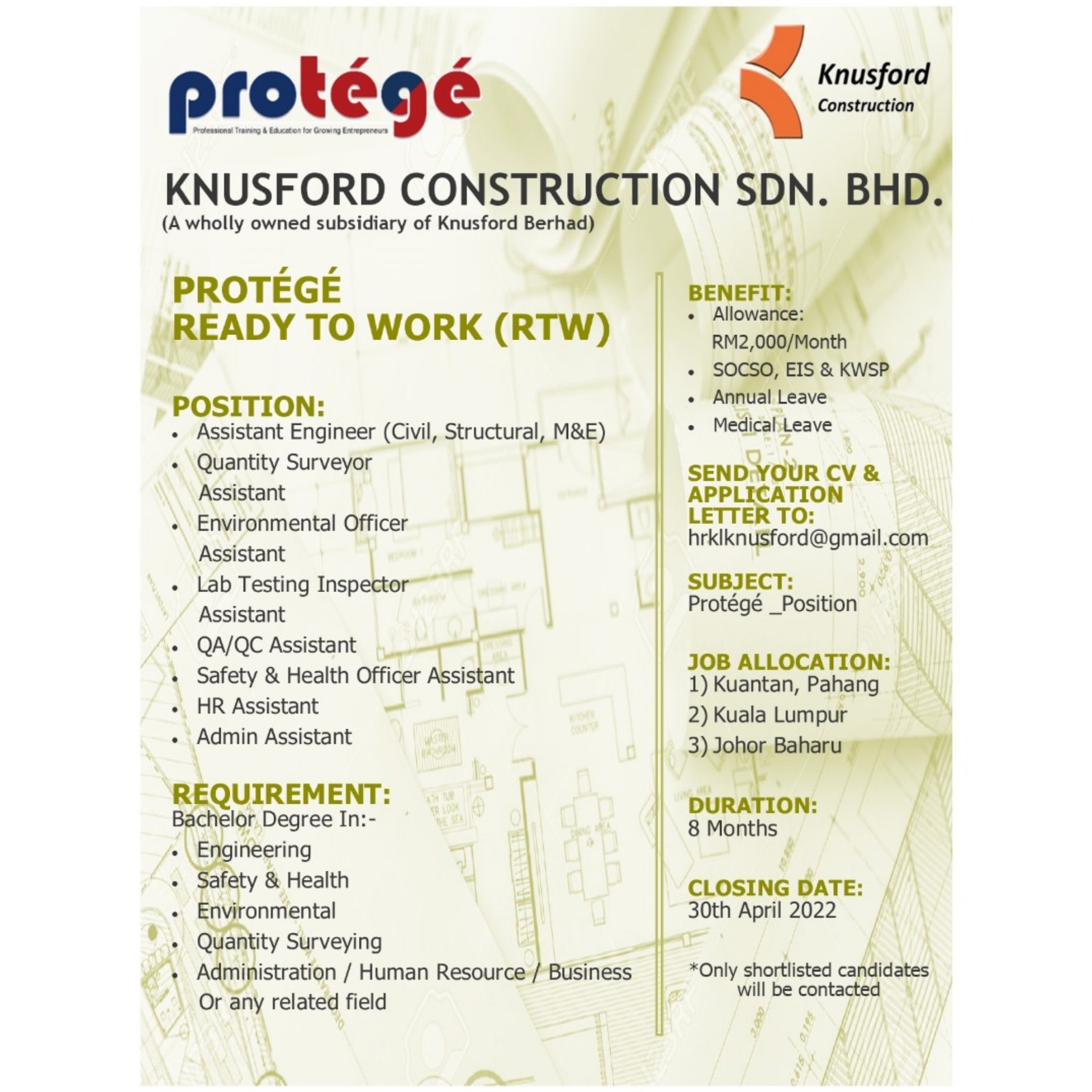 Protege Malaysia On Twitter Dear Graduates We Have Good News Knusford Construction Sdn Bhd Is Currently Looking For Protege Rtw Trainee Hurry Up And Send Your Resume To Hrklknusford Gmail Com Protegertw Jobopportunity Carikerja